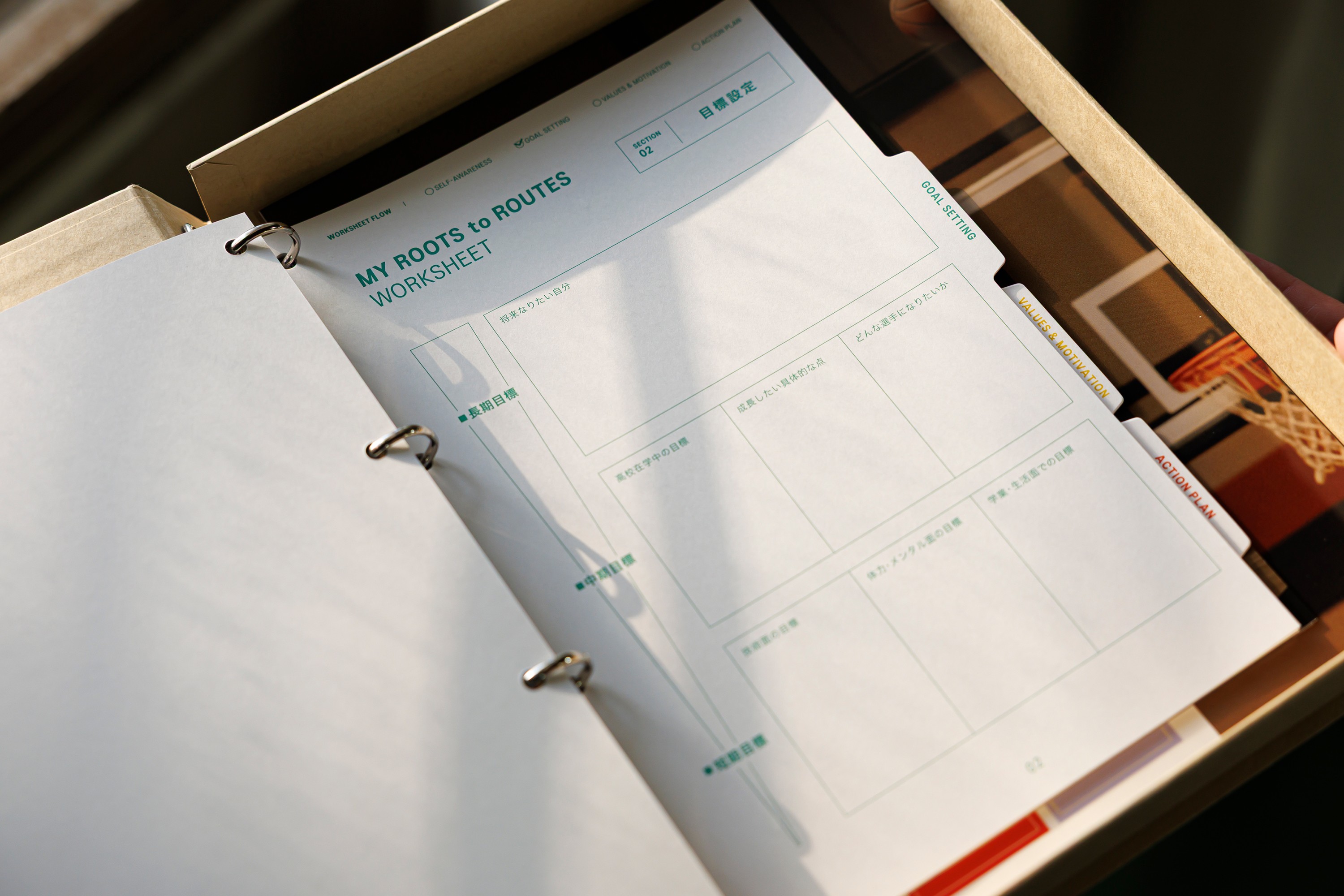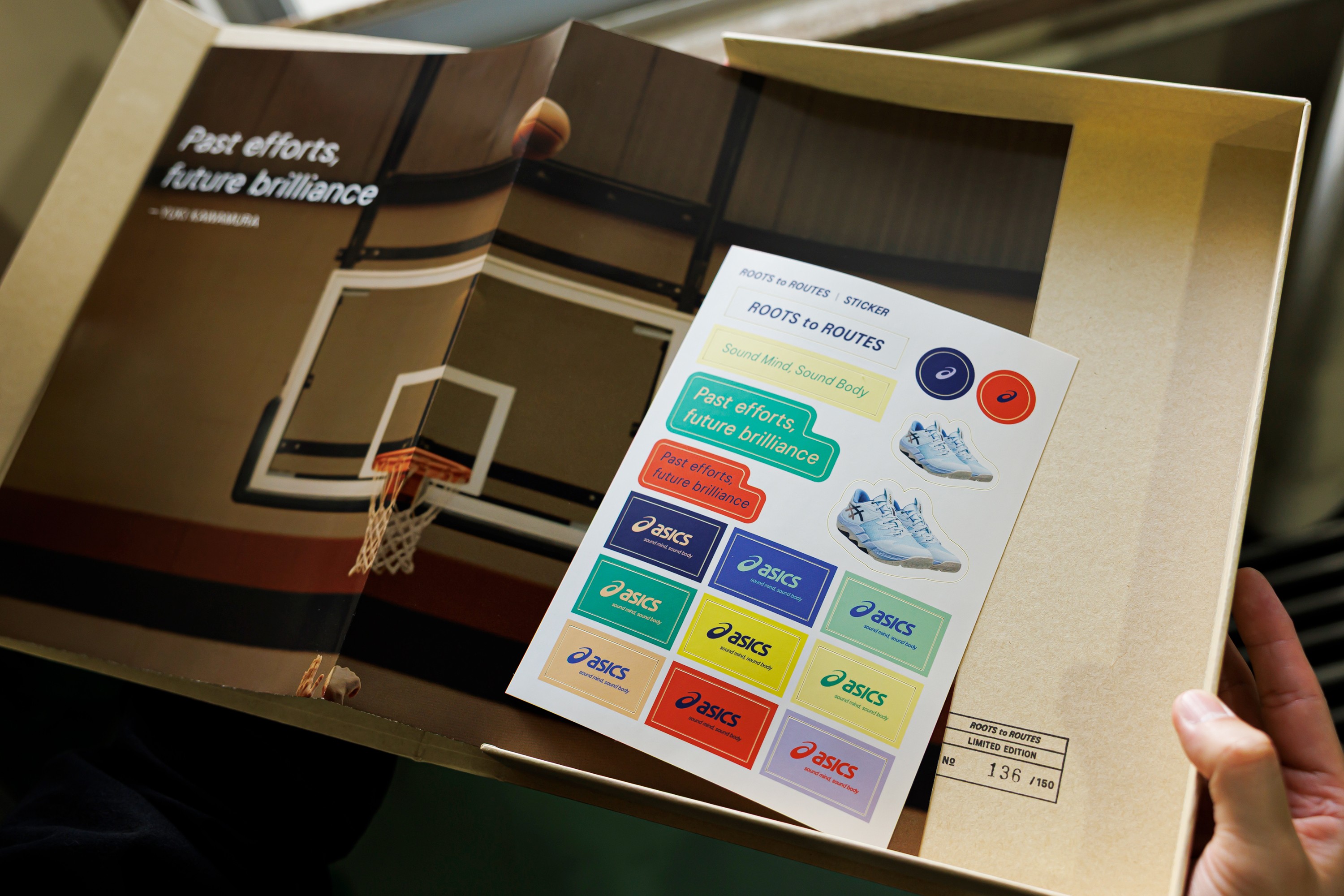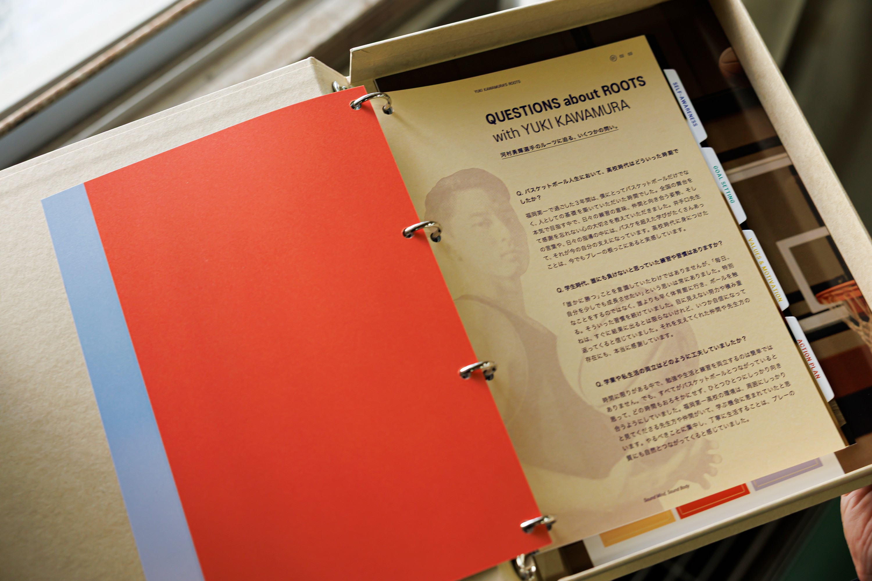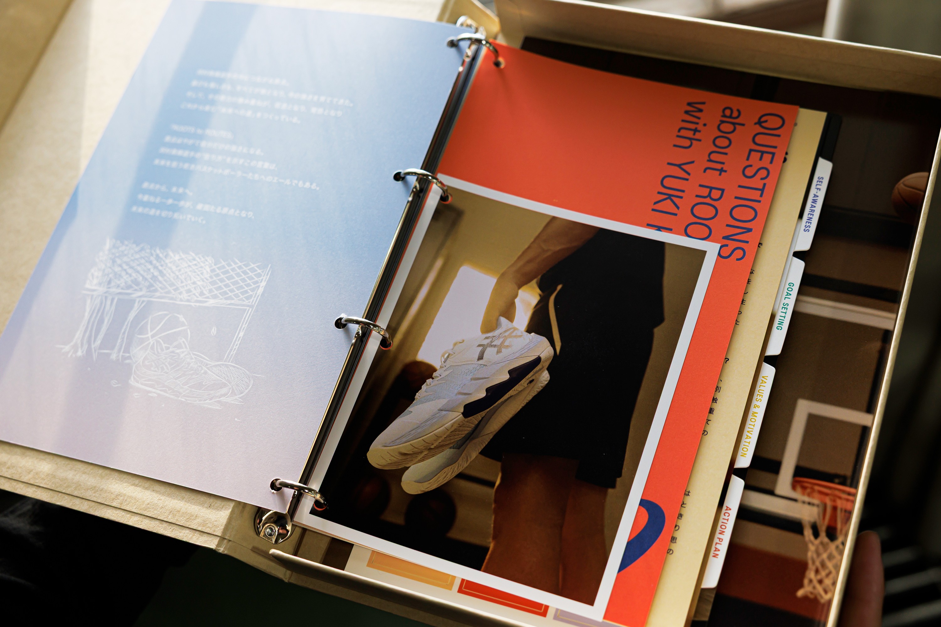 「ROOTS to ROUTES」は、河村勇輝 × ASICS によるプロジェクト。河村選手の原点(ROOTS)から未来への道(ROUTES)へと続く思想を軸に、若い世代へ努力の価値を伝える取り組み。母校向け講義で使用するブックレットキットをデザイン。