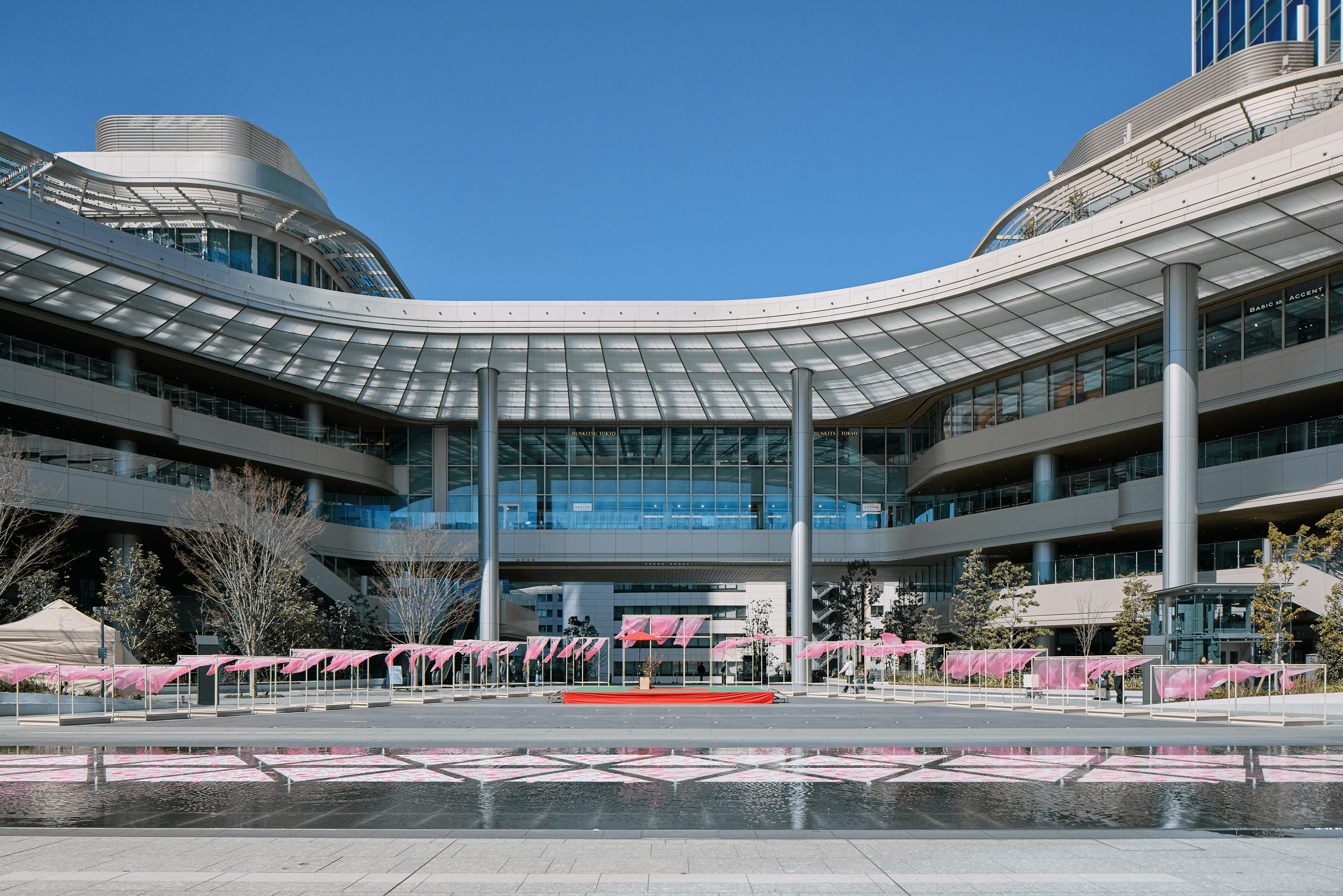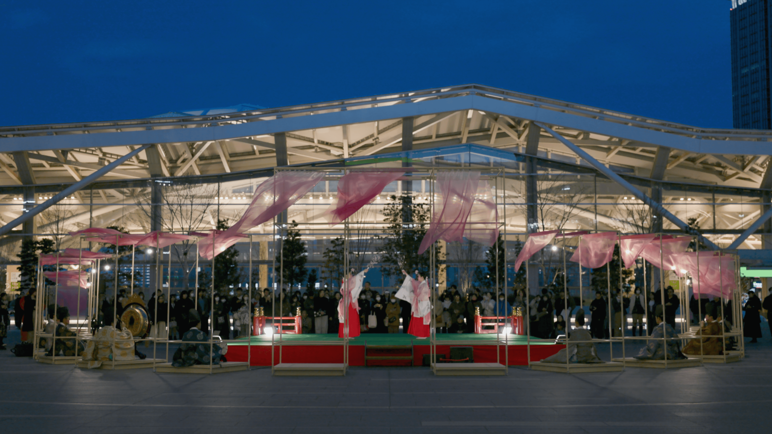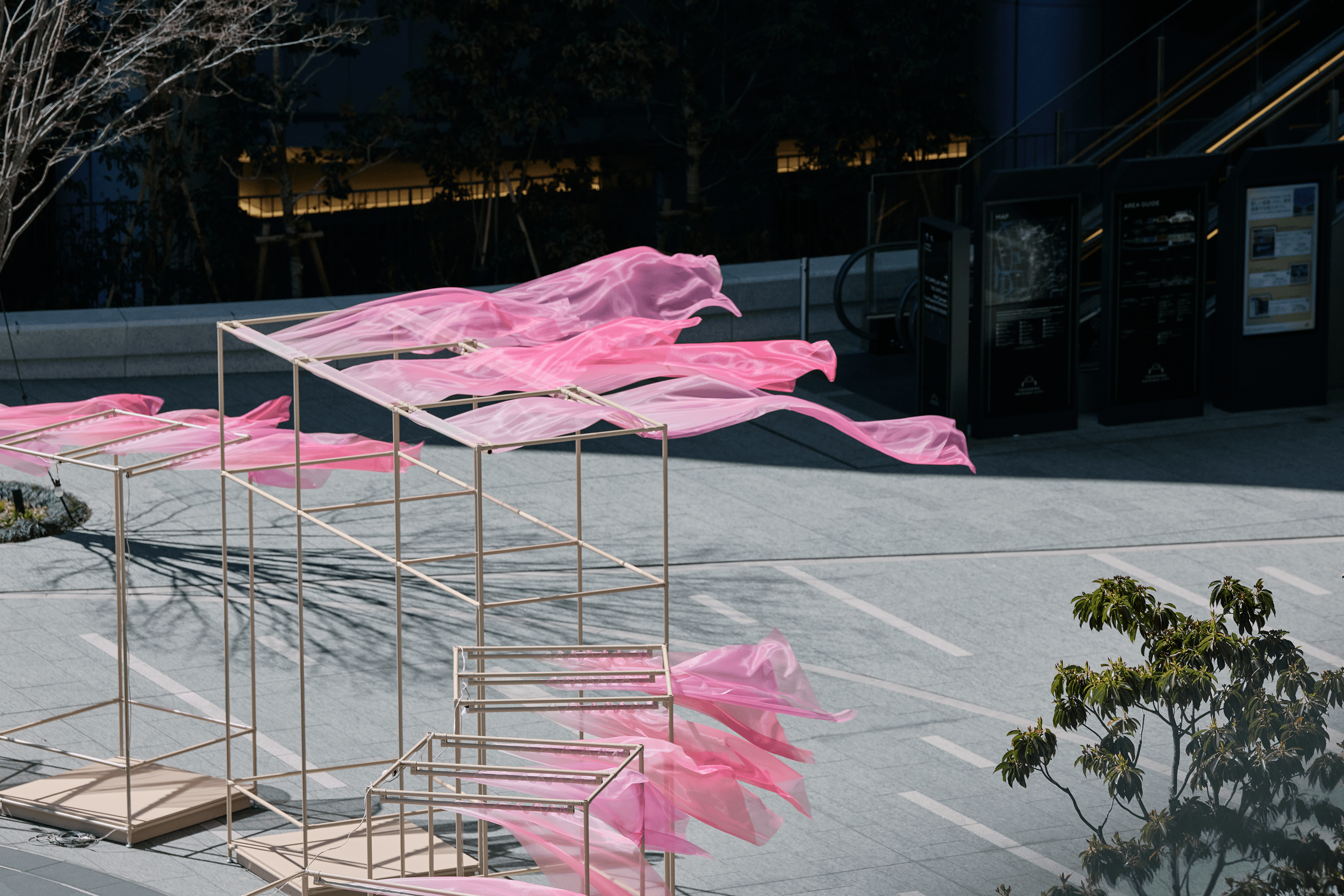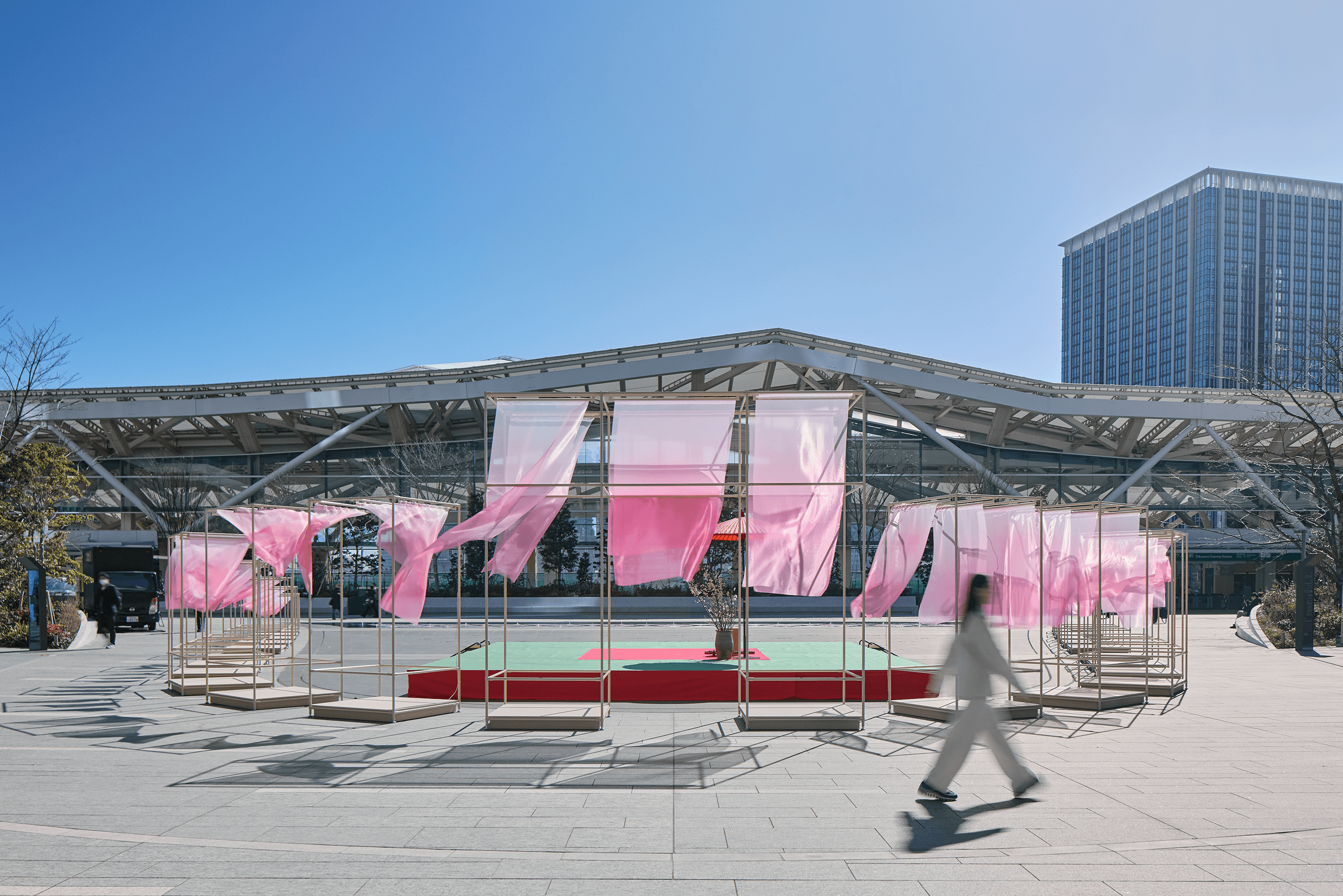 NEWoman高輪のシーズナルキャンペーン「季の入口」におけるインスタレーションを企画・制作。門と暖簾をモチーフに、四季の風景を生み出す可変フレームを設計。春施策では光や風で揺らぐグラデーション表現により、季節の気配を体験として可視化した。